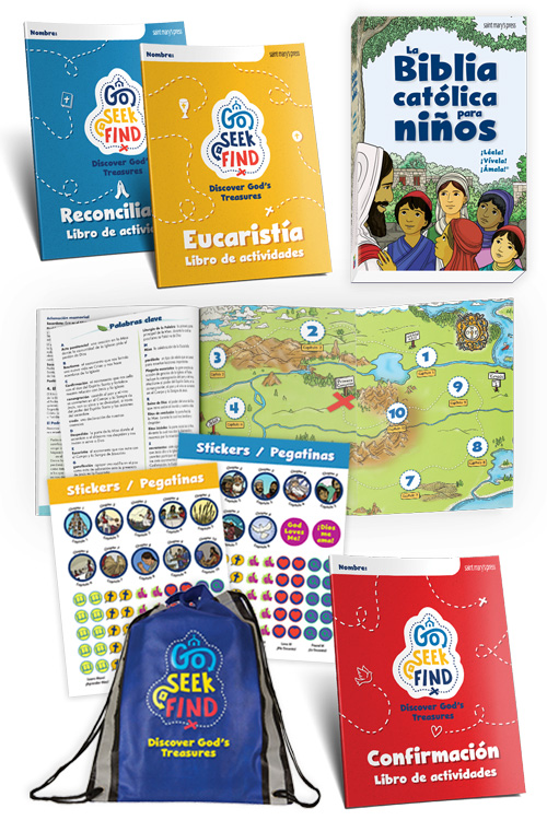 - Reconciliation and Eucharist with built-in treasure maps and stickers (English or Spanish)