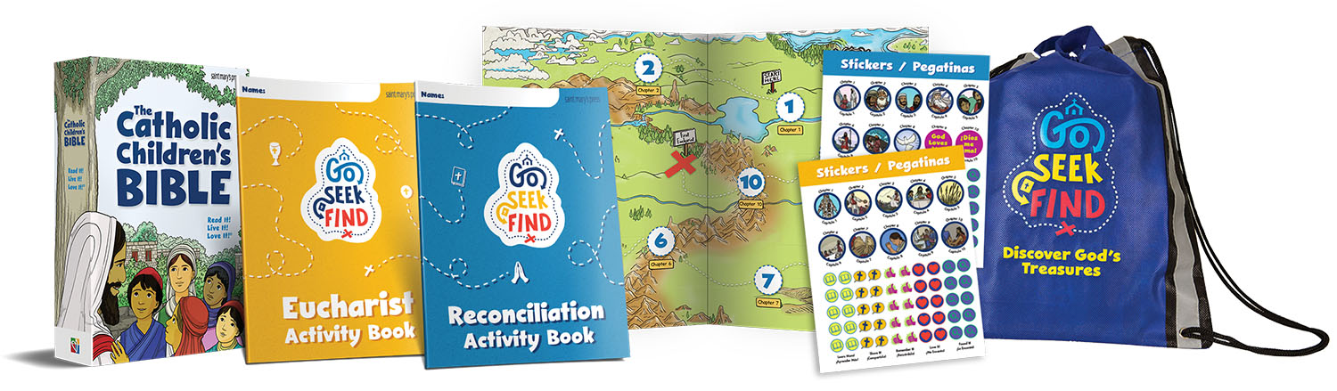 Guide children on a journey to discover the rich significance of first Reconciliation and the Eucharist with Go Seek Find: Discover God’s Treasures! This engaging program supports sacramental preparation, helping children not only learn the sacraments but also deeply treasure these gifts of grace.